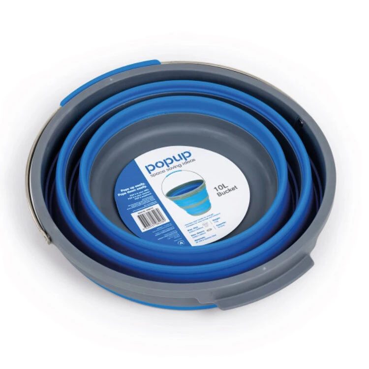 Space saving ideas popup 10 litre bucket, perfect for the caravan, 4wd or anywhere. Pops up easily and collapses down easily.