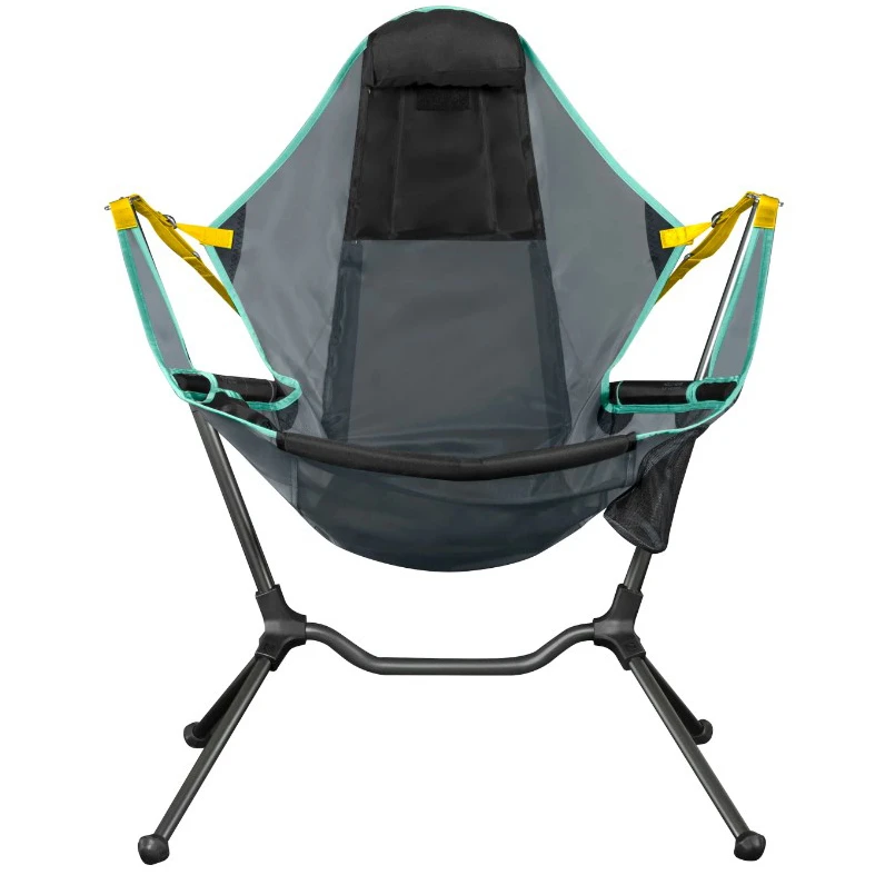 The next generation in camp comfort, Stargaze Recliner Luxury has been re-engineered for even more comfort and stability, with a lower centre of gravity and extended fit range. This first-ever swinging and reclining camp chair takes relaxation to a new level. The swinging offers an exciting new sitting experience, with a relaxing motion that is designed for comfort. And when you’re ready to recline, simply lean back to activate the auto-reclining mechanism and enjoy a great view of the stars. Unlike rocking chairs, this chair is designed for use on any surface, including rocky, sandy, or uneven ground, bringing the relaxation of motion to a host of new environments. The aircraft-grade aluminium is designed to flex while you swing, dynamically suspending you in the air for an entirely new sitting experience. The deep lounge position is hard to beat. Stargaze has all the little comforts you love, including an adjustable headrest, a no-spill cupholder, and a stash pocket to keep your little things close at hand. This is the chair you’ll want to take to camp, the beach, tailgating, your backyard, or even your kid’s soccer game sidelines. The chair setup is intuitive and easy with just three quick steps, so you can set it up and pack it up into the included padded carrying case quickly. The case comes with a shoulder strap and has room for you to stash your phone and keys. You’ll never think of sitting in the same way!