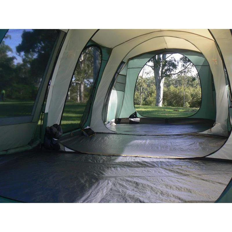The Outdoor Connection Brampton three room family dome tent features great family space and comfort. Three large bedrooms, with 210 cm peak height over the full length of the tent, provide that great ‘fling your arms out’ feeling. Fresh air ventilation is a must on those hot Australian summer nights. Four large ‘Floor to Eave’ windows and four large Omega doors give maximum flow-through ventilation in every direction. Fresh air and coolness right down to ground level where you sleep!