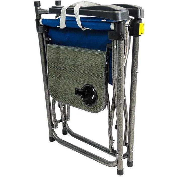 The Outdoor Connection Directors Chair XL is an extra large, comfortable Directors Chair that folds smaller than most standard sized Directors Chairs. When folding the chair the top of the back can be easily detached and folds down into the chair. Waterproof fold out side tableSolid, comfortable position, wide arms provide support for the shoulders.
