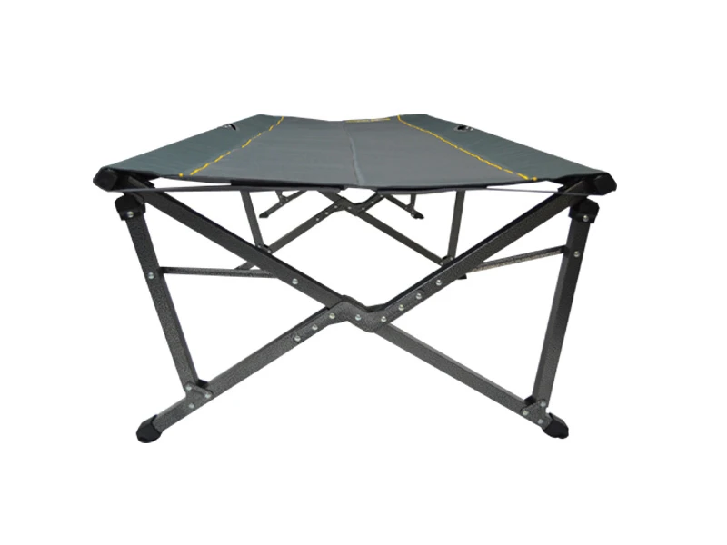 This design eliminates the need for end bars. Simply fold it out and do up the velcro strap at each corner. Without the end bars it is more comfortable because it does not rise at each end. Added comfort and insulation is provided by the padded cover. This simple functional design is very strong, easy to set up and comfortable.