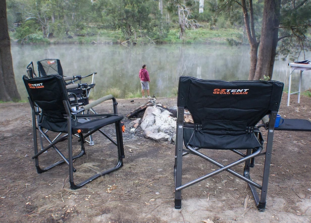 The Oztent Gecko Chair is perfect for every camping getaway. The adjustable table allows you to eat your dinner while still sitting in comfort due to the patented Lumbar support include with every Oztent chair. This is a director’s style chair.