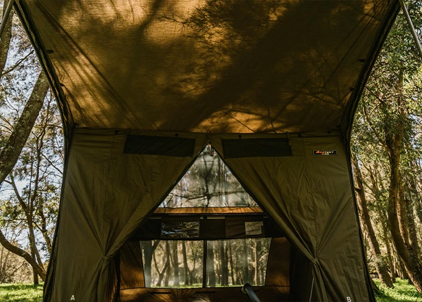 Just like the original Oztent RV5, it still takes 30 seconds to setup, is built form high quality 8-oz polycotton canvas, features a large attached awning and is super modular but now features a SkyMesh Skylight, included the fly and all the extra poles you need to peak the awning plus a brand new rain cover for your carry bag!