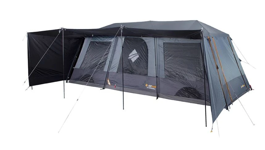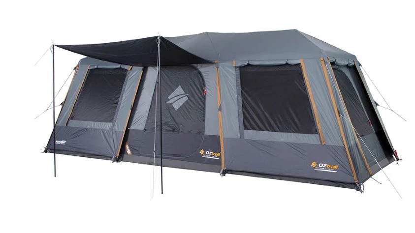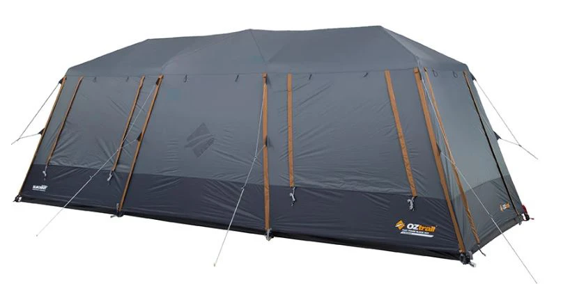 Oztrail’s Blockout Tent series allows families to sleep in longer, get the kids to bed earlier, and even control the heat inside of your tent on a hot summer’s day. The Oztrail Blockout 10-person tent includes 3 large bedrooms sized to fit queen, and double stretchers and airbeds, this tent provides more than enough space to sleep the family in comfort The Oztrail Fast frame system is designed for quick and easy set up in just minutes! With the Blockout coating on the fly, the light can be blocked by up to 95% and reduces the heat inside the tent by 10 degrees. Â