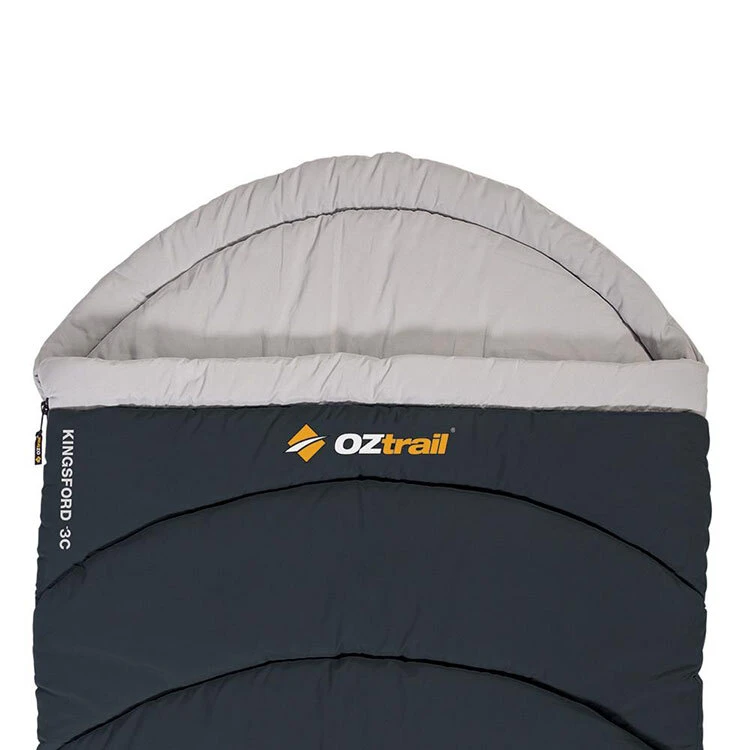 Designed for maximum space and comfort. The Kingsford Sleeping Bag is the perfect oversized camping sleeping bag for cool conditions. The perfect sleeping bag for camping in Autumn or in the states that have a mild winter. There is an Oztrail sleeping bag for all seasons. Although the Kingsford Hooded is designed as a winter sleeping bag, additional warmth can be reached by the addition of an Oztrail Fleece Sleeping Bag Liner, which will also help to keep your sleeping bag cleaner for longer.