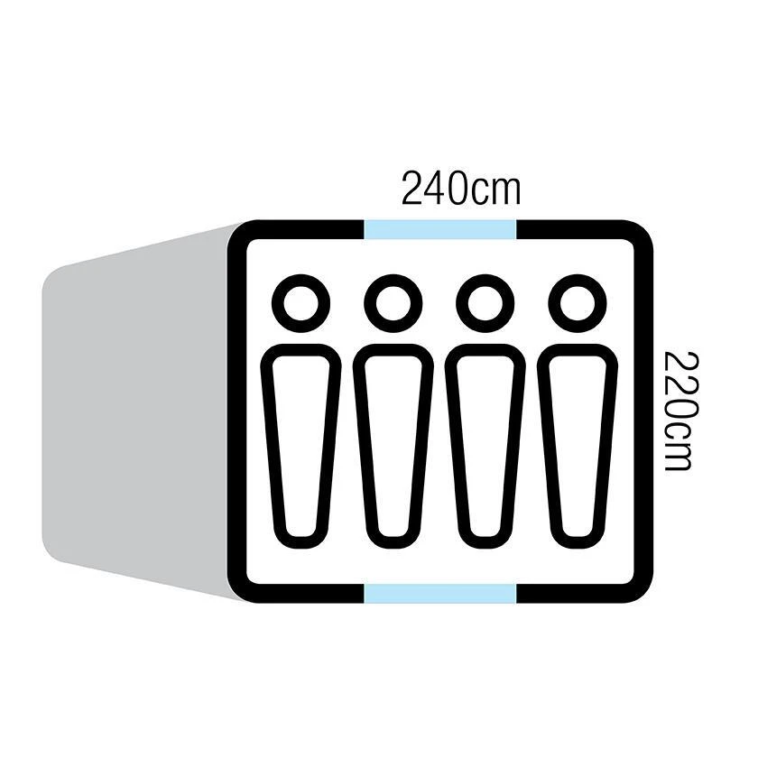| Dimensions: | Tent floor area: 240 x 220 cm Tent head height: 180 cm |