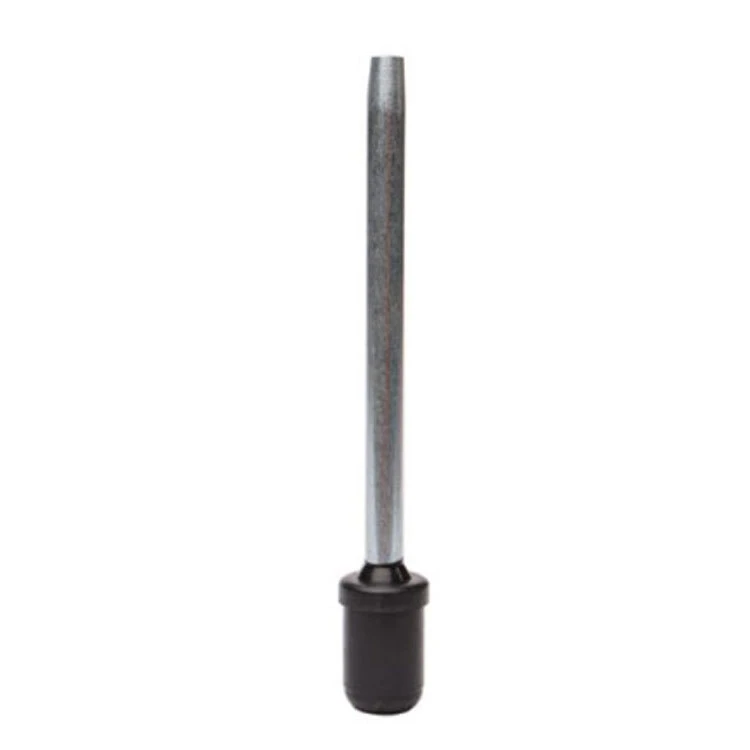 Extra long zinc coated spigot with black ABS plastic end for use when mounting poles.