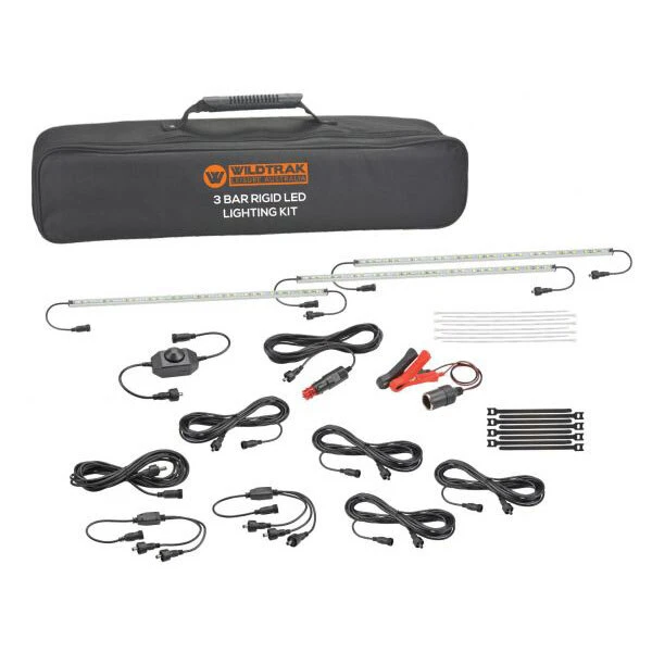A complete camp lighting solution the Wildtrak 3 Bar Rigid LED Lighting kit features three 50cm rigid light bars with 30 white LED lights per bar. Light your campsite with this compact and easy-to-assemble lighting kit.